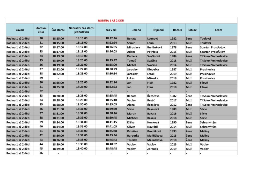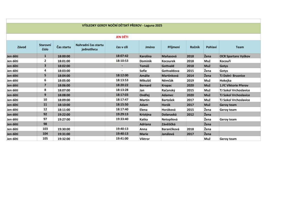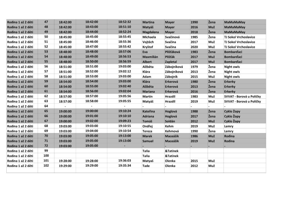 | Kategorie | jméno | příjmení | tým | Čas | UMÍSTĚNÍ |